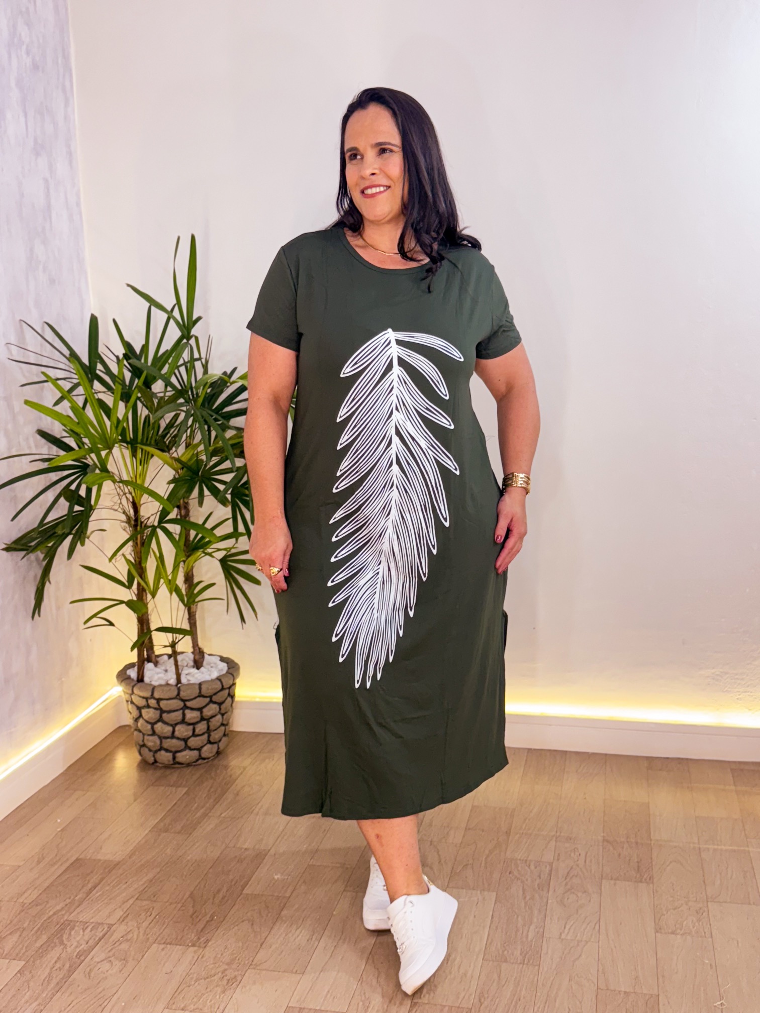 Chemise: Modelo com manguinha, caimento reto e confortável, possui bolsos e está no comprimento longuete.