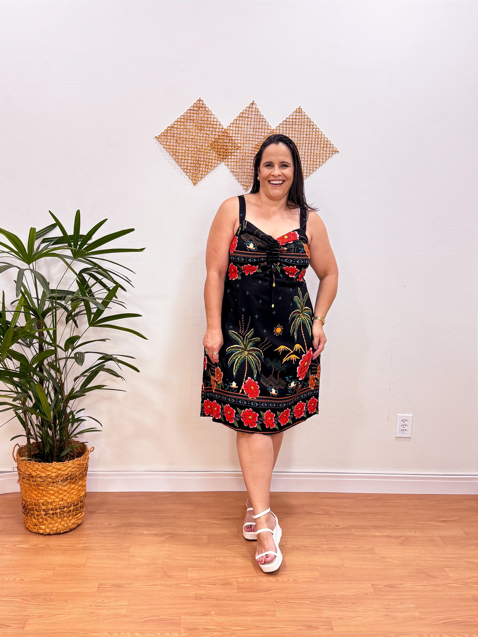O Vestido Curto Roberta - um modelo com frescor perfeito para dias quentes, estampas leves de verão e uma modelagem que se ajusta perfeitamente ao corpo.