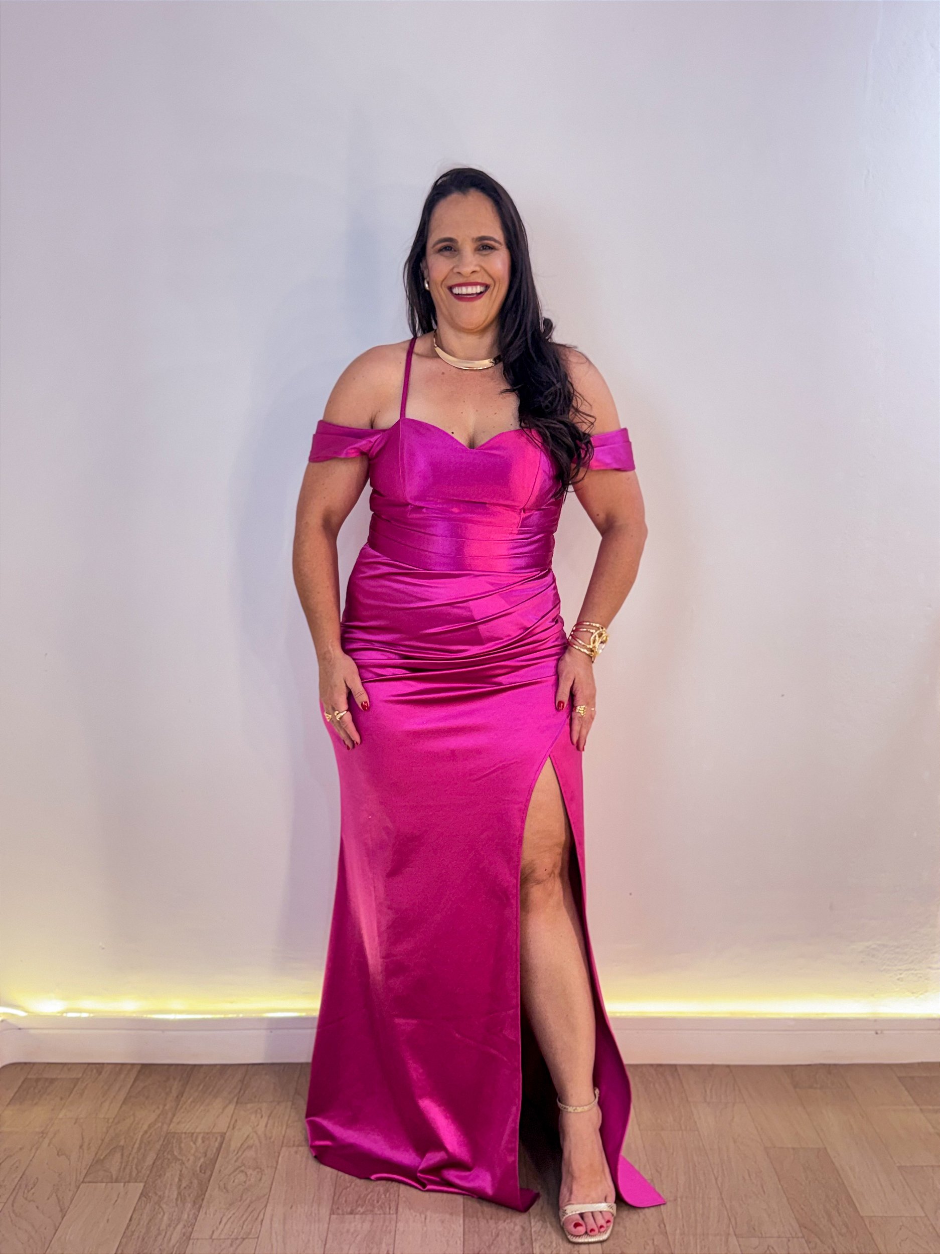 O Vestido Otavia Fúcsia, é confeccionado em prada, um tecido com elastano, leve, macio e muito confortável.