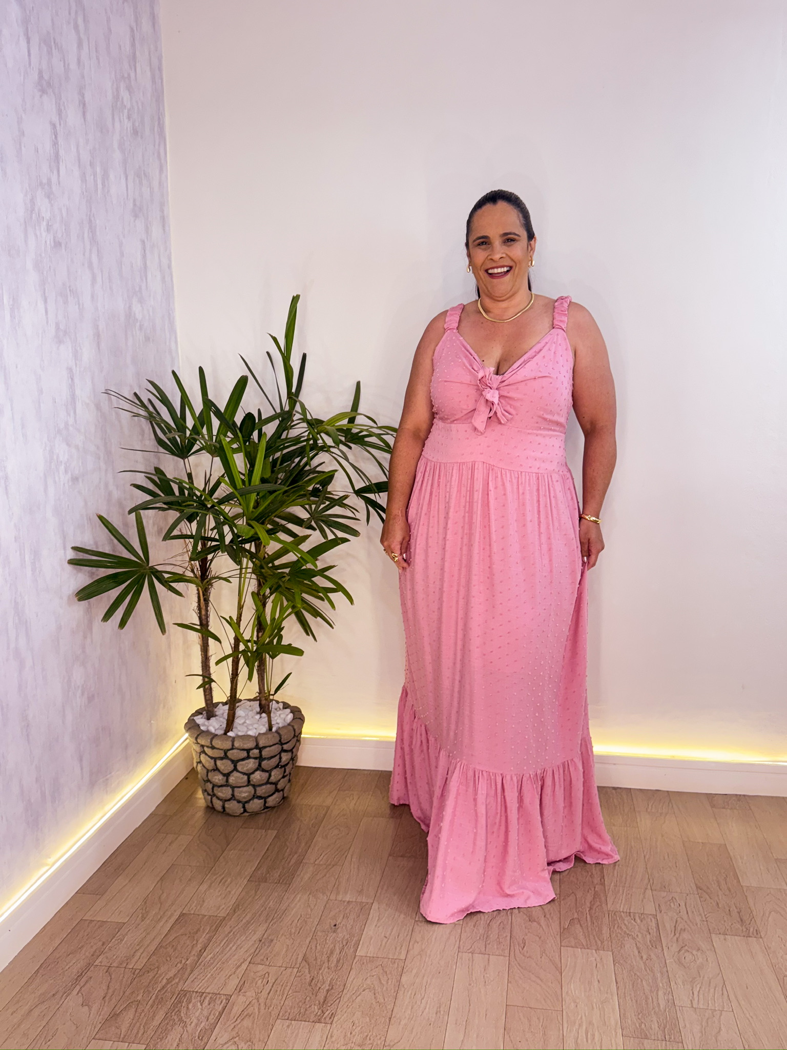 O Vestido Longo Mirley Plus Size, é confeccionado em viscolinho pipoquinha, um tecido sem elastano, elegante, macio e muito confortável.
