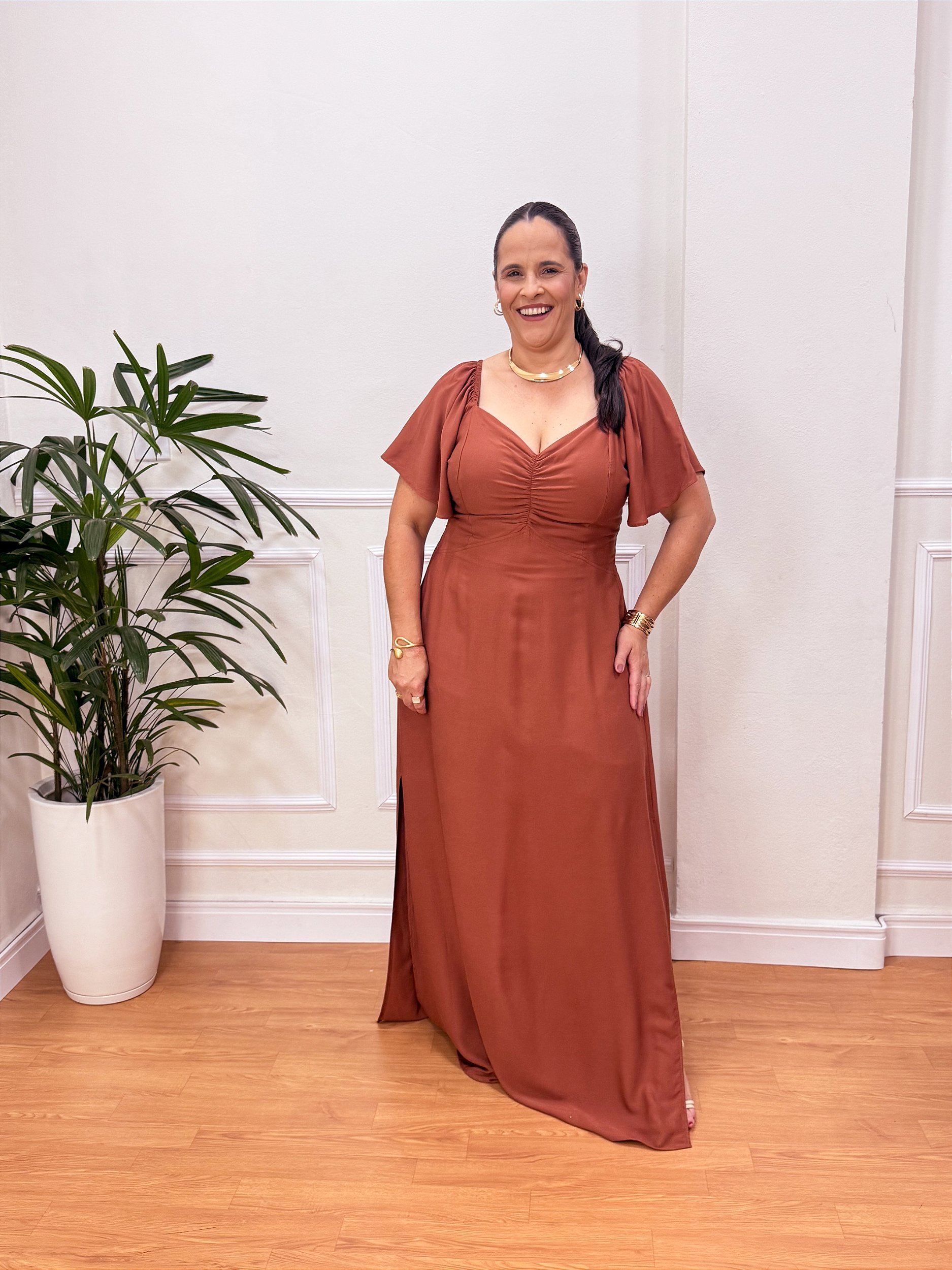 O Vestido Longo Rafa Mangas Plus Size, é confeccionado em viscolinho, um tecido sem elastano, elegante, macio e muito confortável.