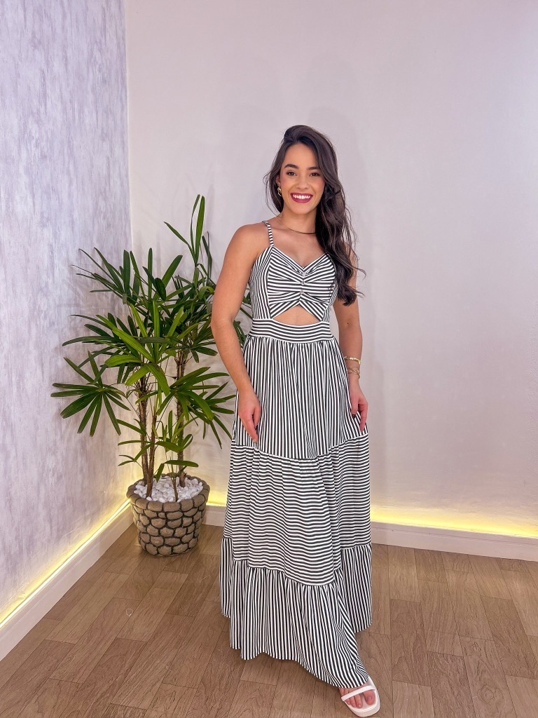 O Vestido Longo Tamires Recorte Slim, é confeccionado em tecido crepe duna, um tecido leve, macio e muito confortável.