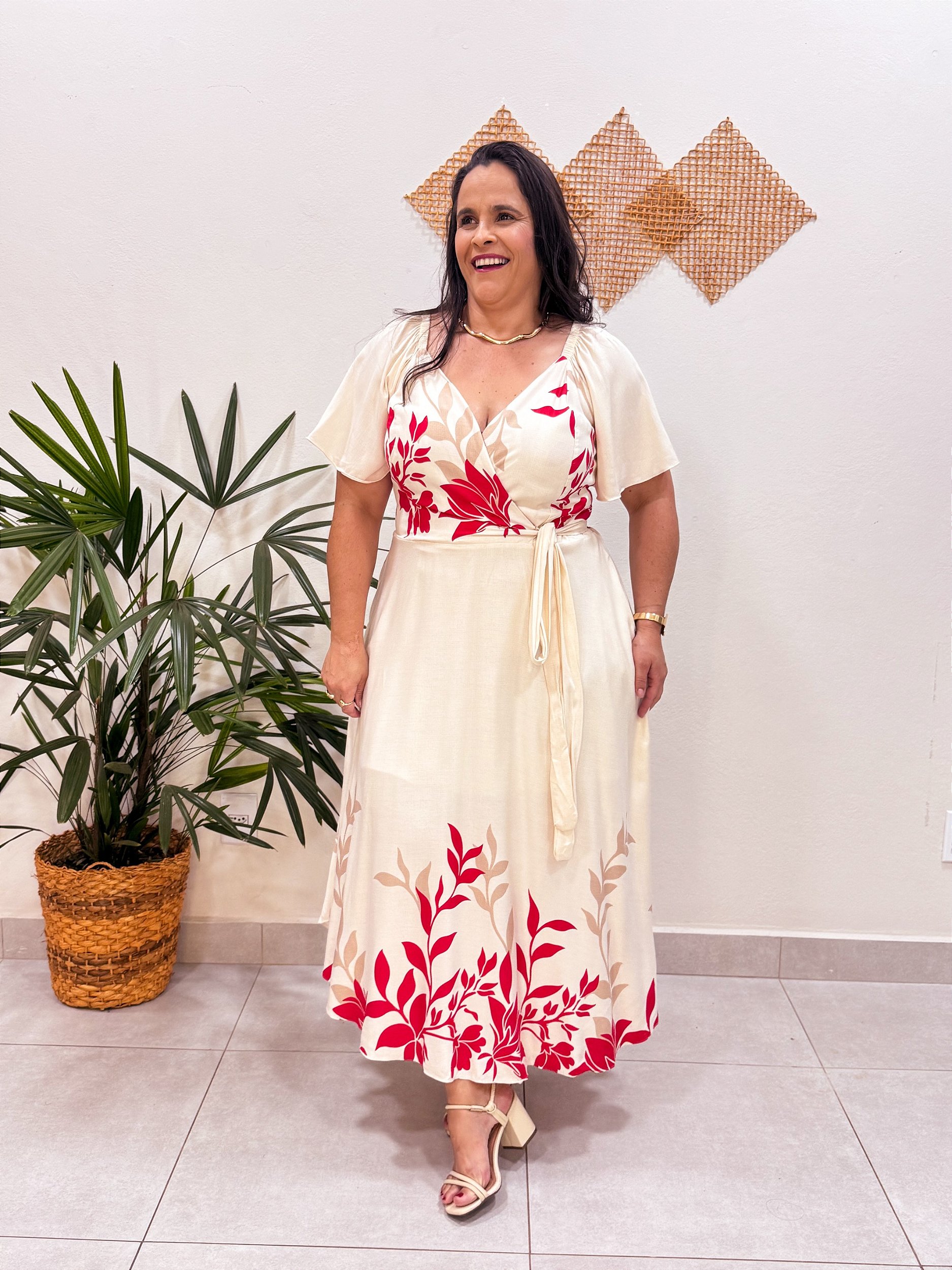 O Vestido Midi Amanda Plus Size, é confeccionado em viscolinho, um tecido sem elastano, elegante, macio e muito confortável.