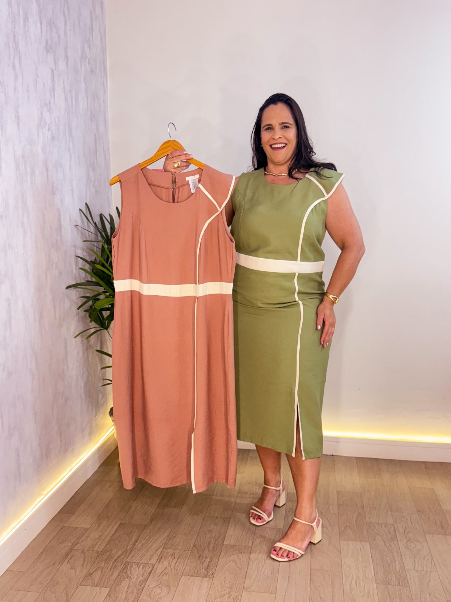 Vestido: Modelo regata, comprimento Midi , costura vertical para alongar, zíper invisível nas costas, marcação da cintura.